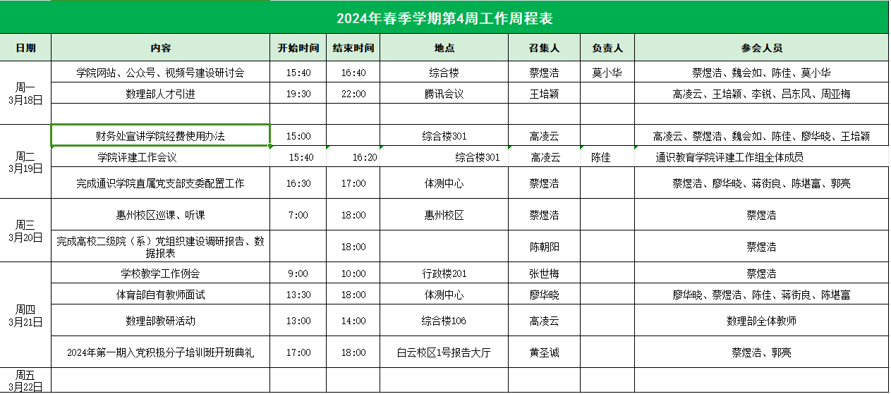 2023-2024学年第二学期太阳成集团tyc33455第4周工作表