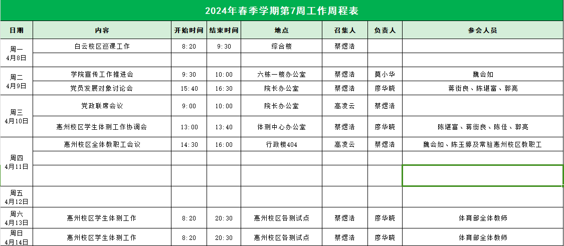 2023-2024学年第二学期太阳成集团tyc33455第7周工作表