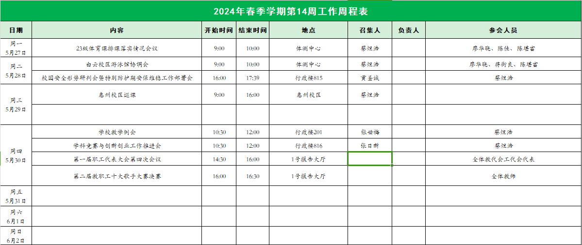 2023-2024学年第二学期太阳成集团tyc33455第14周工作表