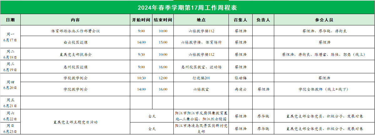 2023-2024学年第二学期太阳成集团tyc33455第17周工作表