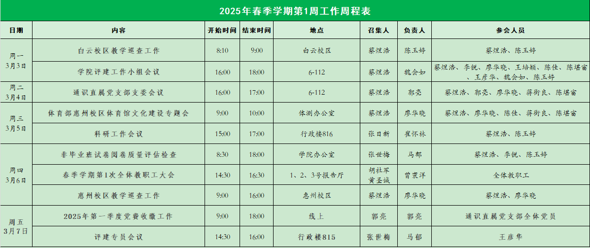 2024-2025学年第二学期太阳成集团tyc33455第2周工作表