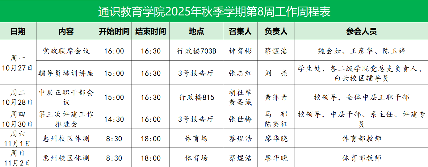 2025-2026学年第一学期太阳成集团tyc33455第7周工作表