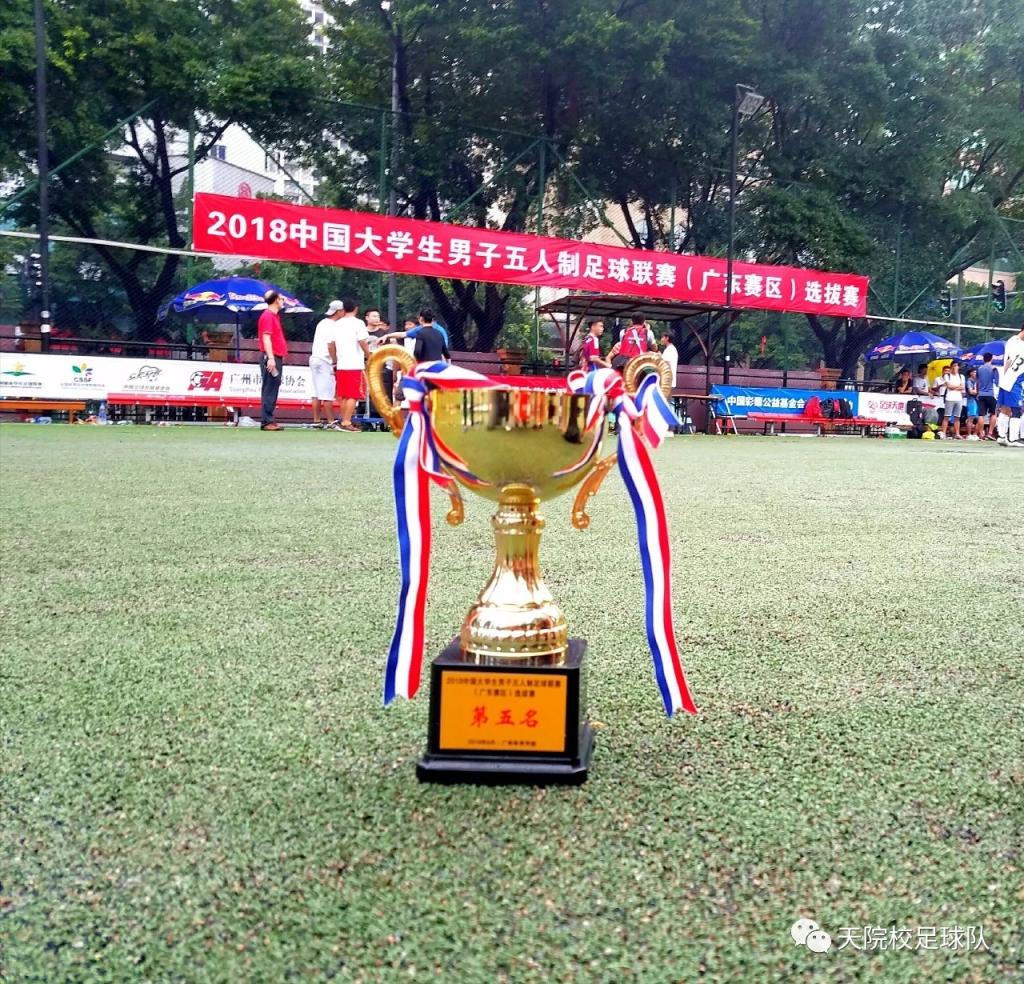 近日,2018年中国大学生五人制足球联赛(广东赛区)选拔赛于5月27日结束,我校足球队在领队邓楠书记和教练员张建宇老师的精心指导下,经过几轮角逐,荣获第五名,是甲组球队中获得最好成绩的队伍。