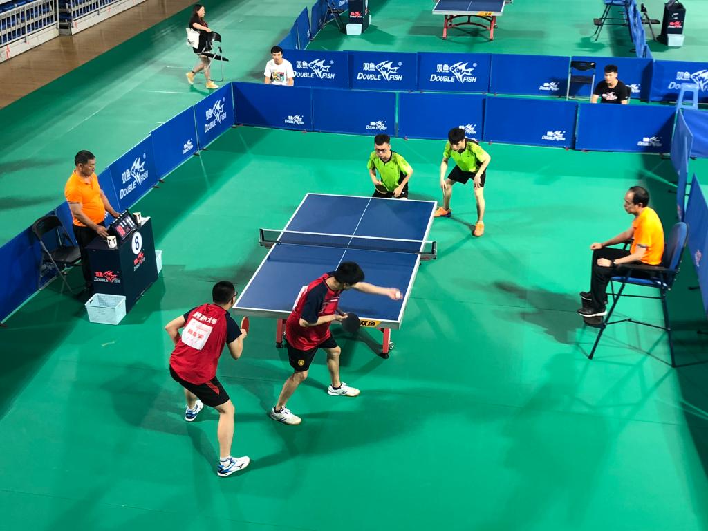 接下来的比赛更加激烈。16日上午9点对阵广东海洋大学,在对手领先1局的形势下,两名运动员放手搏回2局,展开激烈的对抗赛,我们运动员坚决不放弃,稳中求胜,最终以3:1战胜广东海洋大学,挺进4强。现场的啦啦队和队友们也鼓足了劲给他们加油。在4进2的比赛中,对阵南方科技大学,也就是本次比赛的男双冠军获得者,我们运动员继续坚持永不放弃,但最终以1:3惜败。