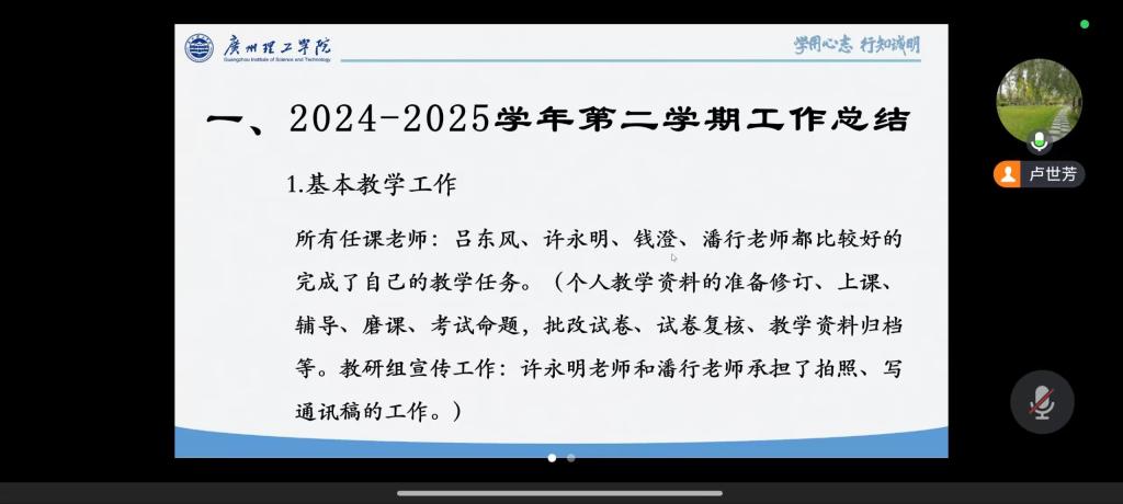 此次线上会议的召开,不仅清晰梳理了过往工作的得失,更明确了新学期的工作方向与重点任务。工程数学组全体教师将以此次会议为起点,凝心聚力、扎实工作,持续提升教学质量,助力学生数学素养与综合能力的全面发展,为学校人才培养工作贡献力量。