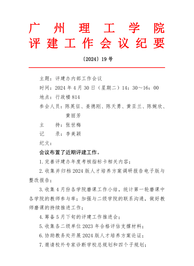 广州理工学院评建工作会议纪要(19号)