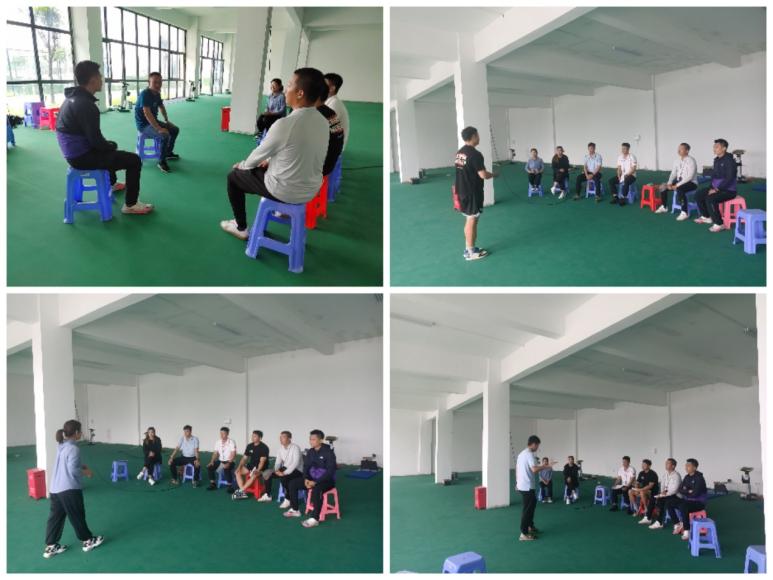 廖华晓主任根据运动项目分类开展教学磨课,大球组、小球组及技巧组对新教师进行磨课锻炼以提升教师备课水平,促进教学方法融合,共同打造金课。同时,他对新教师的教学目标设置、课堂设计等进行分享和讲述。蒋街良主任对体育教师课前准备作出明确要求,课前要提前准备好课堂所需要的运动器材,保障器材在课堂教学上的使用率。陈堪富副主任指出,在课堂教学组织上,大家应互相学习,取长补短,相互借鉴优秀教学方法。