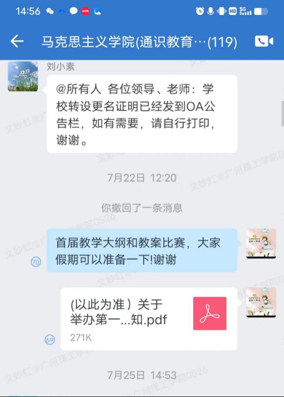 7月22日在学院企业微信上发布通知信息