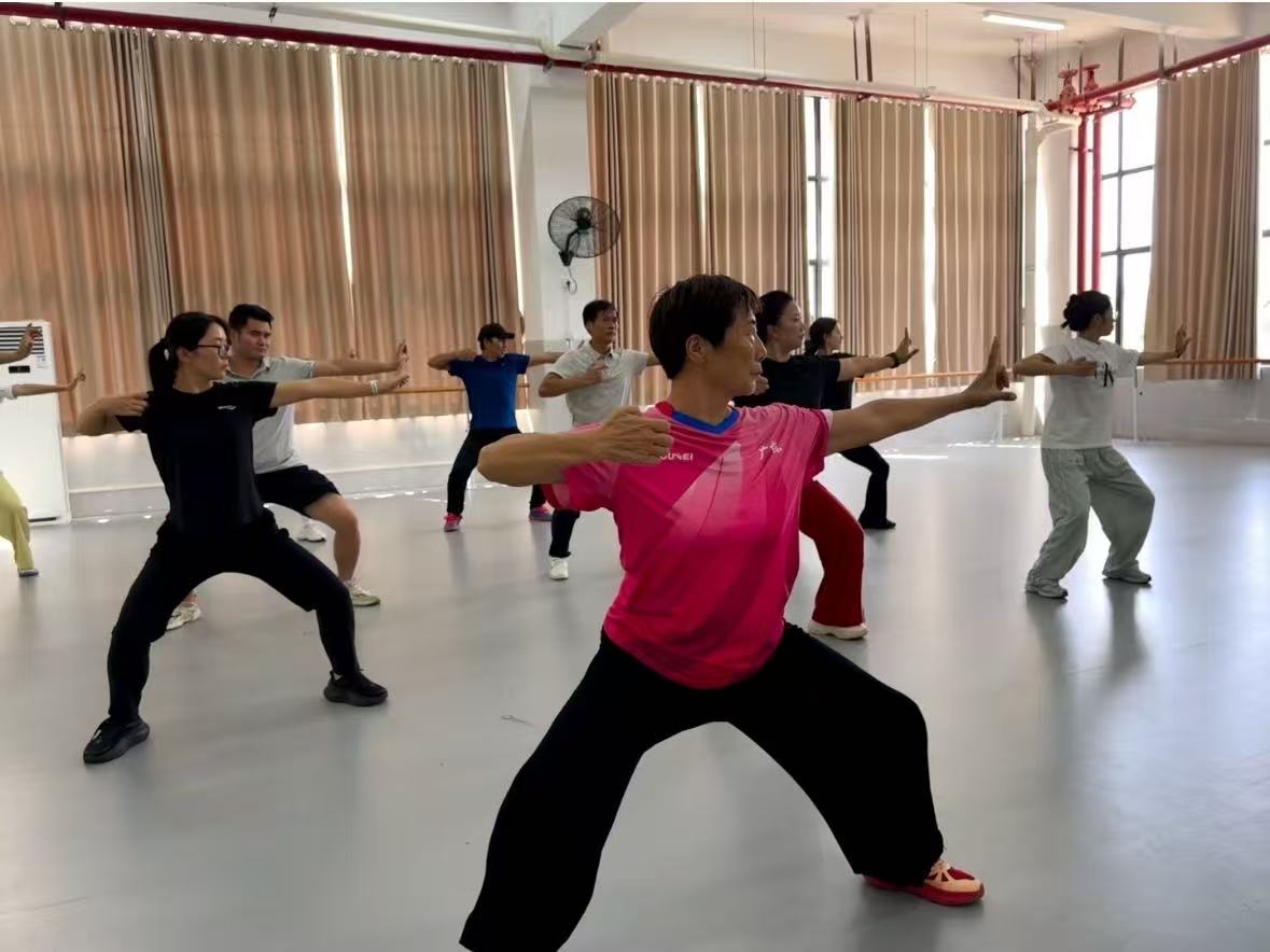在研讨环节,老师们围绕教学中的实际问题展开热烈交流。针对“如何帮助学生快速纠正动作偏差”“如何结合学生体质调整练习强度”等痛点,大家分享各自的教学经验——有的提出用“口诀记忆法”简化动作要领,有的建议通过慢动作对比视频直观展示错误与标准动作的区别,更有老师结合运动生理学知识,讲解每个招式对身体脏腑的调理作用,让教学不仅“教动作”,更能“讲原理”。