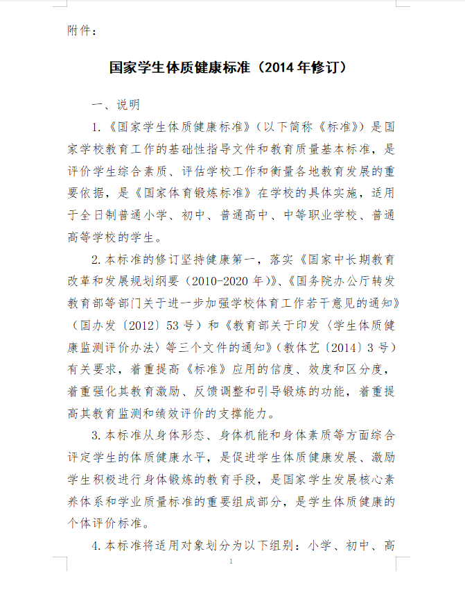 国家学生体质健康标准(2014年修订)