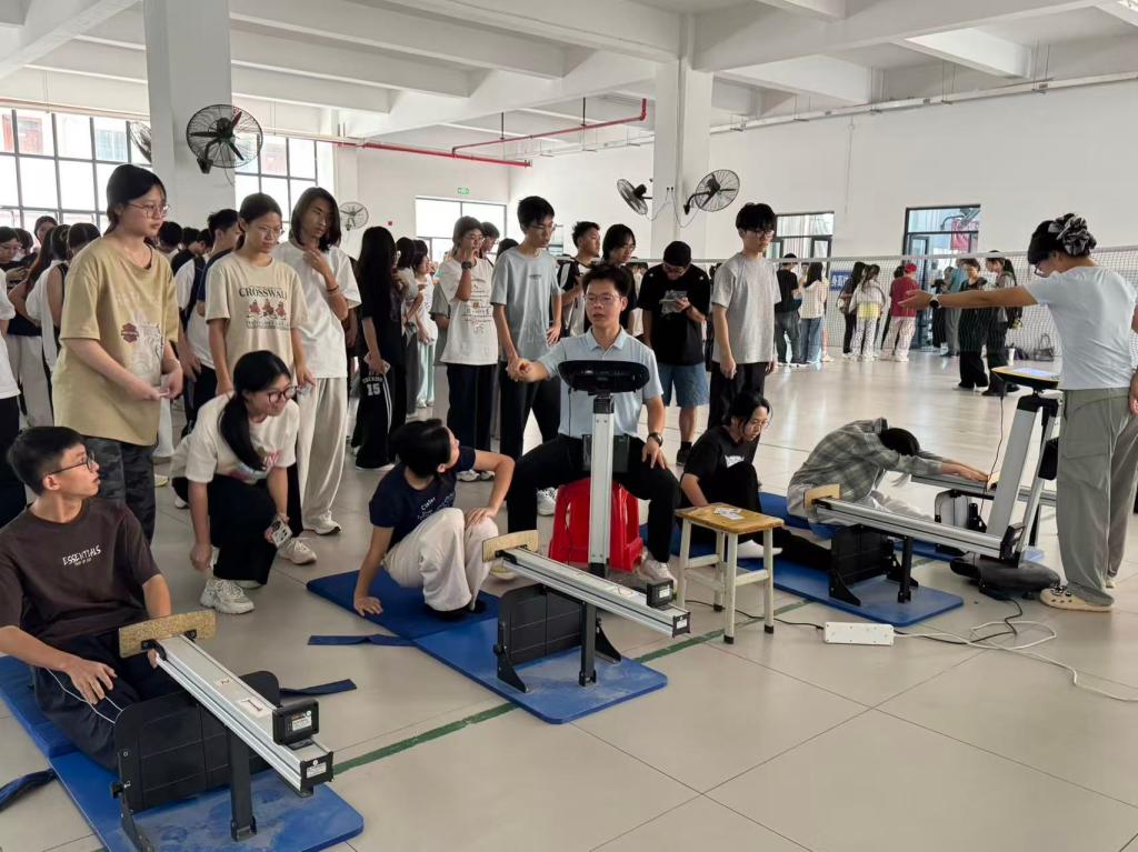 测试现场组织严密、秩序井然,各项目区域标识清晰、衔接顺畅。本次体测涵盖身体形态、机能及素质三大类核心指标,具体包括身高、体重(BMI指数测算)、肺活量等基础项目,以及立定跳远、坐位体前屈等素质项目,其中男生需完成引体向上测试,女生完成1分钟仰卧起坐测试。老师们严格遵循测试标准,严谨记录每一项数据,耐心指导学生规范完成动作;过程中穿梭各区域提供引导服务,及时协助处理现场问题。