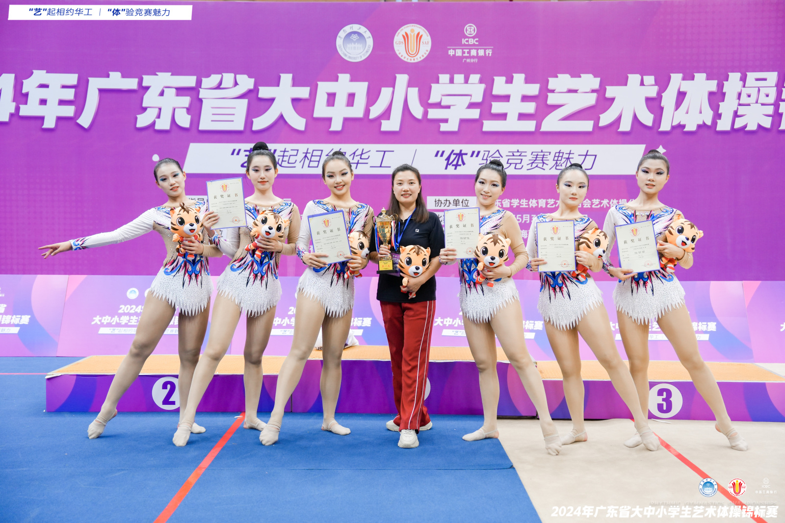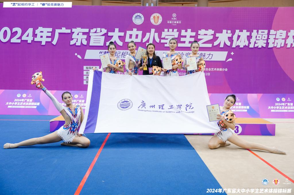 艺术体操是一项艺术性较强的竞技体操项目,吸纳芭蕾舞、民族舞、现代舞、杂技的精华,培养运动员的力量、灵巧、节奏感等素质,在音乐律动中展现身体的艺术性和协调性。我校为甲组唯一一所民办参赛院校,教练员和队员们都压力山大,赛场上队员们沉着冷静,大胆展示,表现出了高超的技艺和出色的团队协作力,经过激烈角逐,广州理工学院运动队脱颖而出,一举拿下大学甲组团体总分第一名!陈佳教练并获得“优秀教练员”的称号,荣获佳绩!她们的努力和付出在这一刻得到了回报,也为自己的学校赢得了荣誉。广州理工学院成为了今年赛场的一匹黑马!