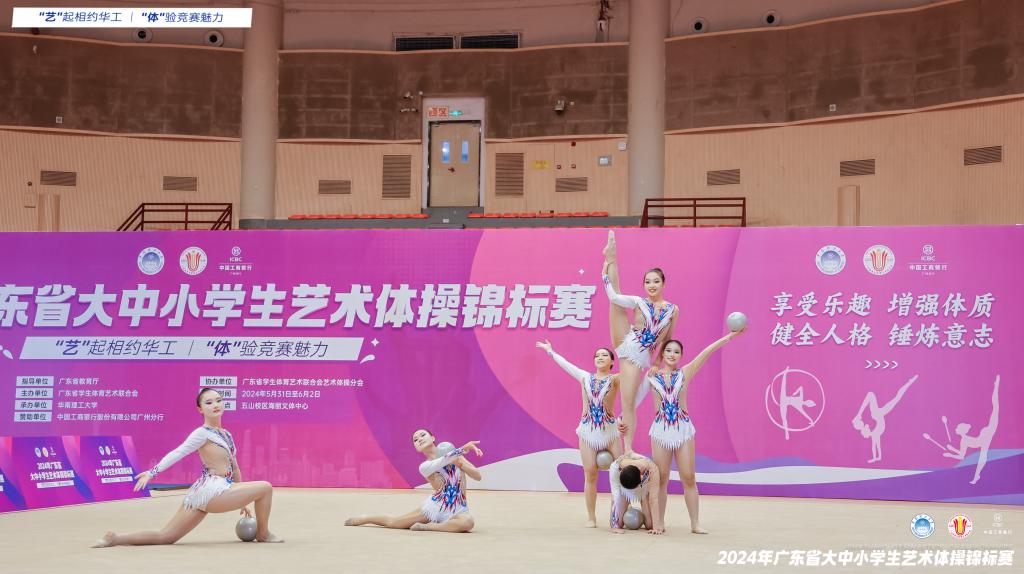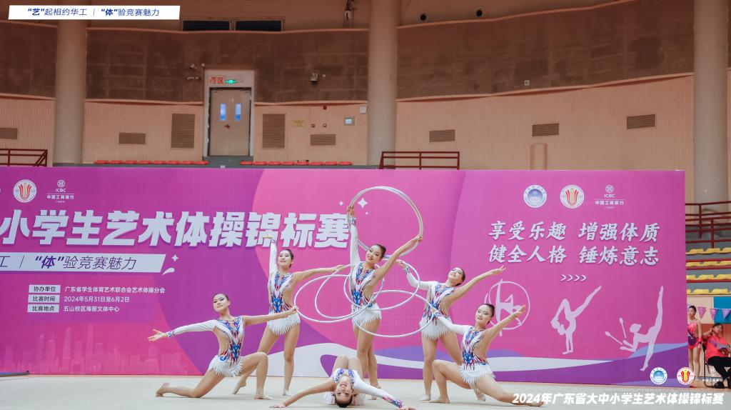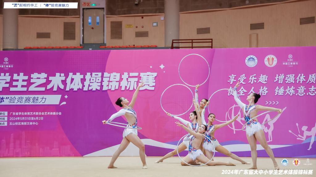 5月31日--6月2日,由广东省教育厅指导、广东省学生体育艺术联合会主办、华南理工大学承办的2024年广东省大中小学生艺术体操锦标赛在华南理工大学五山校区海丽文体中心举办。三天赛程,来自全省82所学校(其中高校13所),1000余名运动员参加,组委会共委派23名优秀裁判员团队及60余位工作人员共同参与到本次赛事活动。
