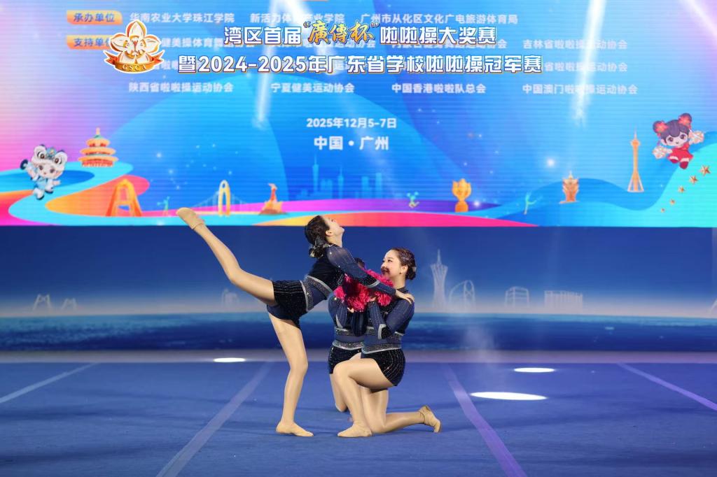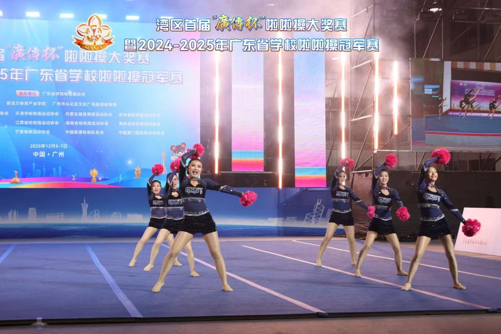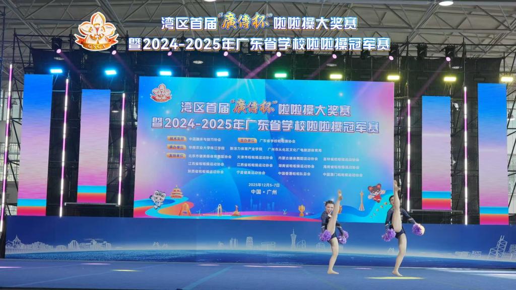 12月6日,湾区首届“广传杯”啦啦操大奖赛在华南农业大学珠江学院体育馆(从化校区)盛大举行。本次赛事由广东省学校啦啦操协会主办,华南农业大学珠江学院、新活力体育产业学院、广州市从区文化广电旅游体育局承办,中国蹦床与技巧协会提供技术支持,更得到北京市健美操体育舞蹈协会、天津市啦啦操运动协会等全国多省市啦啦操相关协会的大力支持,规模盛大,吸引全国11个省份的6700余名优秀运动员同场竞技。