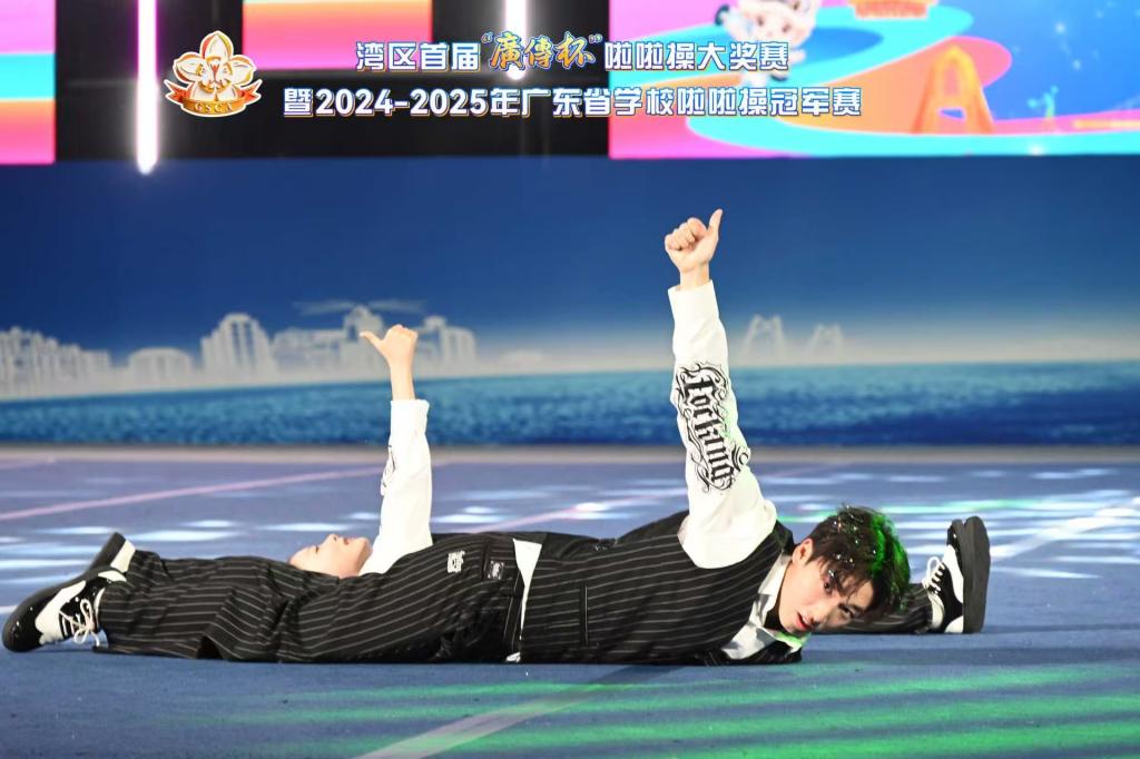 赛场上,广州理工学院的队员们将啦啦操的动感与团队默契推向新高度。花球项目中,队伍每一次托举都精准有力,每一次队形切换都创意十足,与音乐节奏的契合度堪称完美;双人街舞项目则以充满张力的肢体语言,将街头艺术的自由灵魂与竞技体育的拼搏精神融为一体。队员们脸上自信发光的笑容,既是对舞台的敬畏,更是广州理工学院的学子“敢闯敢拼”精神的生动注脚。