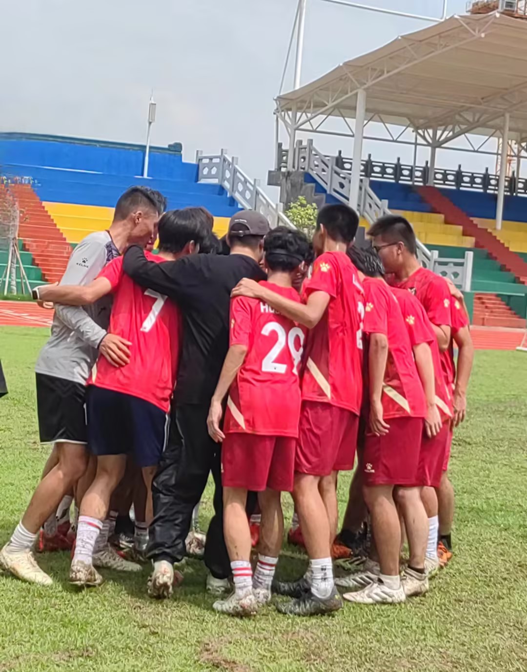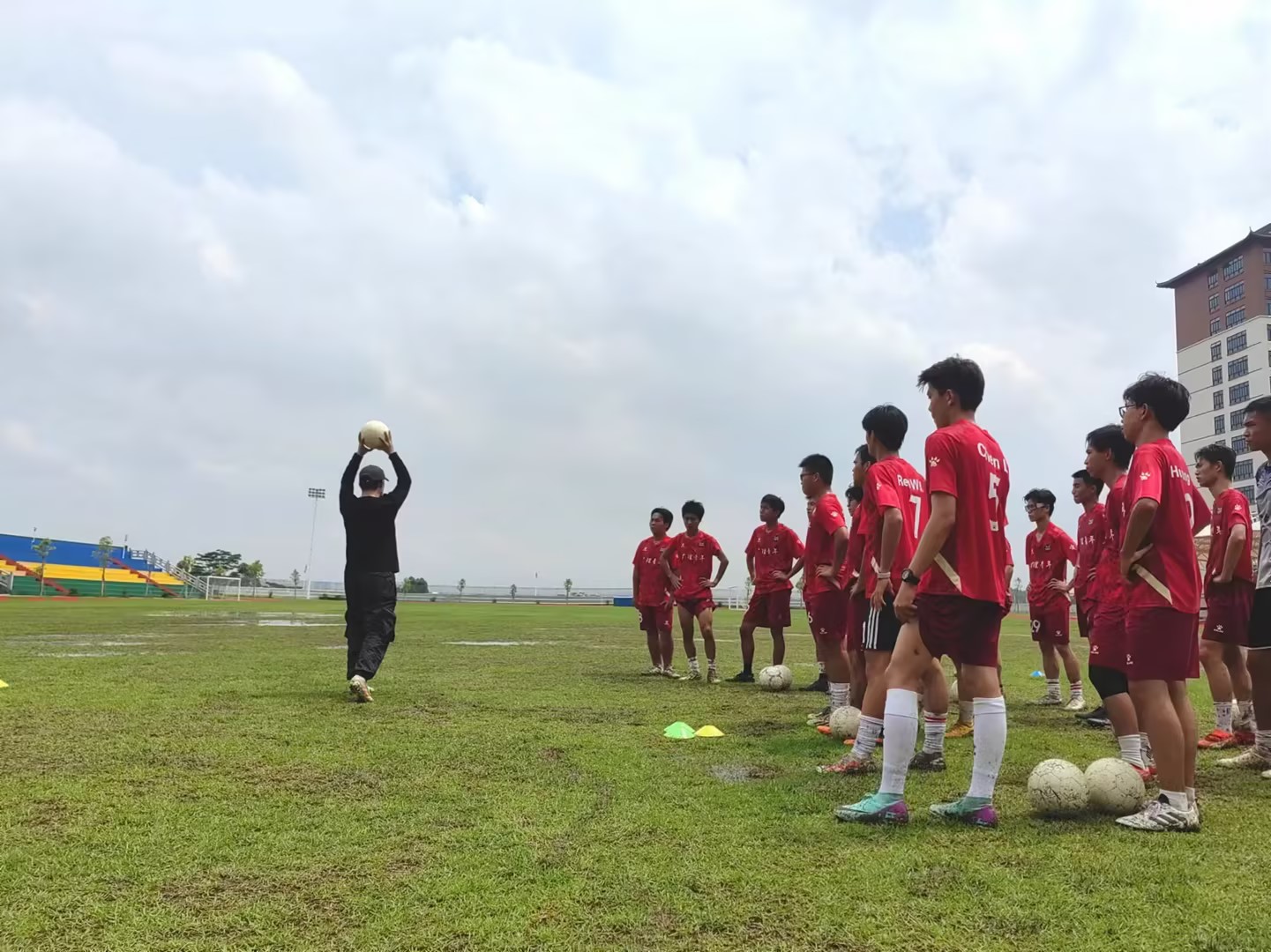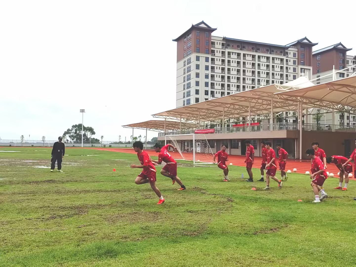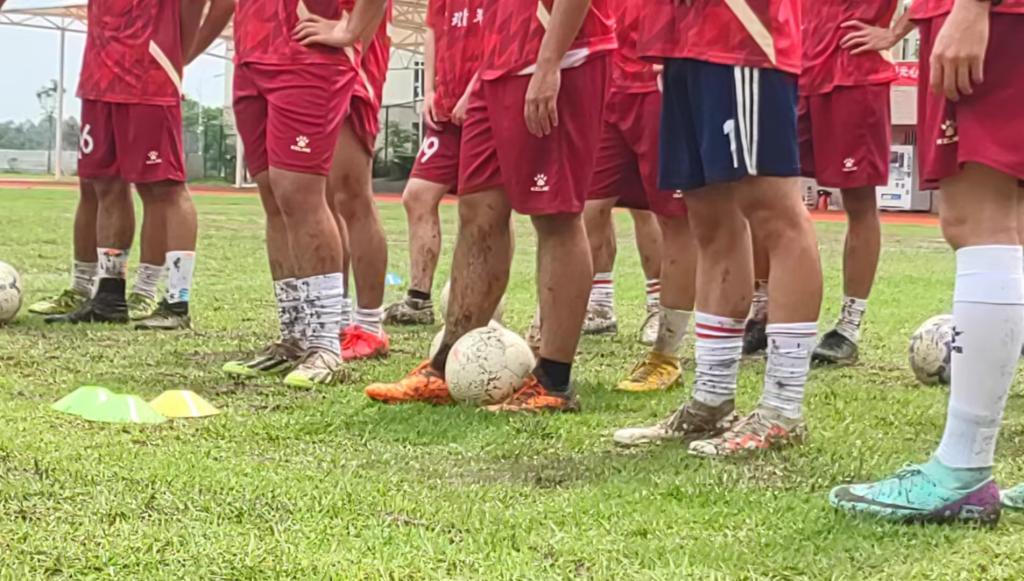 当日正逢雨后,操场弥漫着泥土的芬芳,湿漉漉的地面,泥泞不堪,但这丝毫没有影响学生们足球示范课的热情。球员们脚踏泥泞,奋力奔跑,每一步都溅起泥水,仿佛在谱写一曲激昂的乐章。足球在泥水中滚动。熊老师对学生们说:“ 我们不能等环境来适应我们,要主动去尝试适应各种环境!”