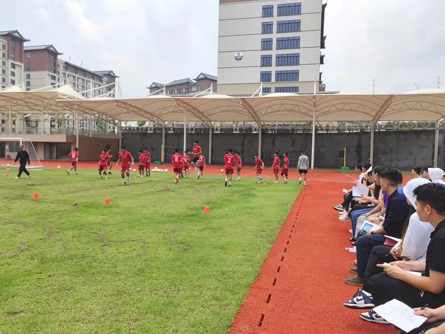 足球,是一项充满激情与活力的运动,4月25日在惠州校区我们体验了一场充满激情和汗水的足球示范公开课。我院体育部全体教师观摩了这堂精彩的示范课,体育部足球教练熊源老师带领着学生们为大家展示了精湛的足球技巧,讲解足球的基本规则和战术。